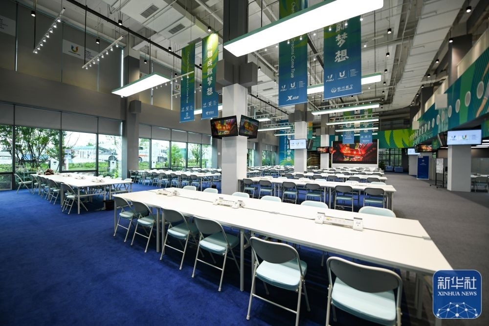 ↑這是4月18日拍攝的成都大運(yùn)會主媒體中心。新華社記者 沈伯韓 攝