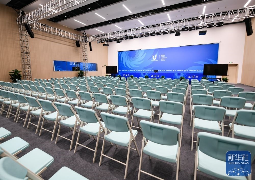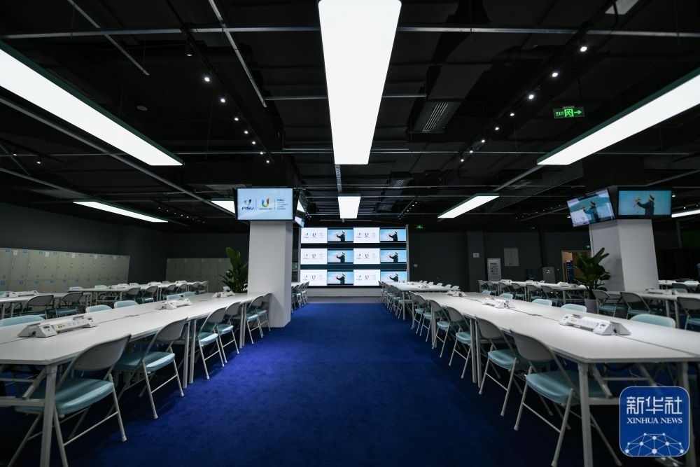 ↑這是7月13日拍攝的成都大運(yùn)會主媒體中心新聞發(fā)布廳。新華社記者 王曦 攝