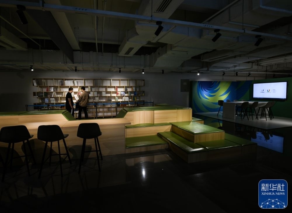?↑這是7月13日拍攝的成都大運(yùn)會主媒體中心的會客廳。新華社記者 王曦 攝