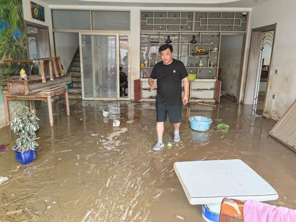 望海莊村艷天綜合商店門前,村民楊立新和趕來(lái)幫忙的親戚朋友正在一起整理受損貨品,這個(gè)村里最大的超市此次受災(zāi)較重?!皳p失不少,但我們不能光等著,先把能搶救的搶救出來(lái),能收拾的都收拾干凈,盡己所能先恢復(fù)?!睏盍⑿抡f(shuō)。