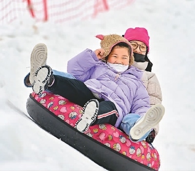 游客在山東省青州市駝山滑雪場體驗雪圈項目。王繼林攝(人民視覺)