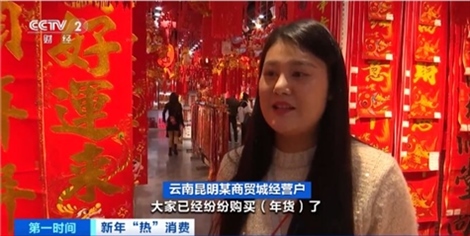 云南昆明某商貿城經營戶:從上個月開始,人們就已經開始購買年貨。燈籠、福字、對聯,還有窗花、擺件都是最熱銷的產品。采購高峰期從這個月開始,批發(fā)商已經開始補貨,一直會持續(xù)到臘月二十八左右。