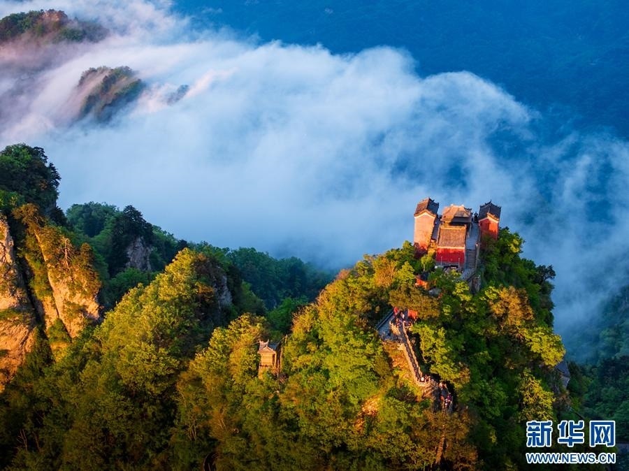 五月的武當(dāng)山,云霧升騰,浩瀚無垠,靈性的古建筑若隱若現(xiàn),如同水墨畫卷,勝似仙山瓊閣,氣勢(shì)磅礴,蔚為壯觀,給游客帶來無限遐想與向往。