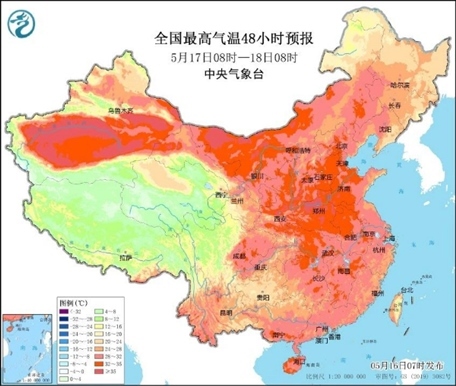 詳情:據中國天氣網消息,5月17日至19日,南疆盆地、華北平原、黃淮等地的部分地區(qū)將有35℃以上高溫,局地氣溫甚至可超37℃。省會級城市中,西安、鄭州、濟南都有望迎來今年首個高溫天氣,普遍早于常年,其中西安、鄭州將遭遇高溫“兩連擊”,公眾外出還需注意防暑降溫。而南方的暖熱程度遠遠不及北方,由于云量較多,多地還有雨水出沒,氣溫普遍會低于常年同期,江南大部最高氣溫普遍在30℃左右,南北氣溫倒掛。(來源:中央氣象臺、@中國天氣網)
