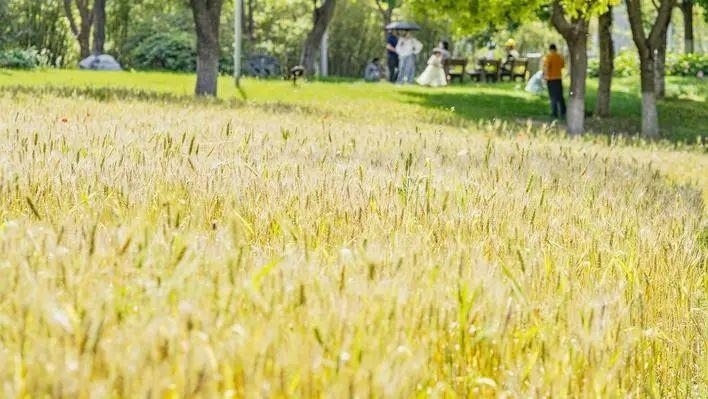 而在湖北武漢園博園景區(qū),也有一塊上千平方米的麥地。如今,這塊麥地上的小麥已經(jīng)成熟,麥穗飽滿,煞是喜人,讓人油然想到一句古詩:“最愛壟頭麥,迎風(fēng)笑落紅?!睋?jù)報(bào)道,園方表示,今年擬與園區(qū)研學(xué)組合作,將開展割麥子活動(dòng)。研學(xué)導(dǎo)師會(huì)對(duì)孩子們進(jìn)行麥子科普,以及如何正確割麥(割麥、捆麥、運(yùn)麥、拾麥)等,同時(shí)還會(huì)用麥穗插花。