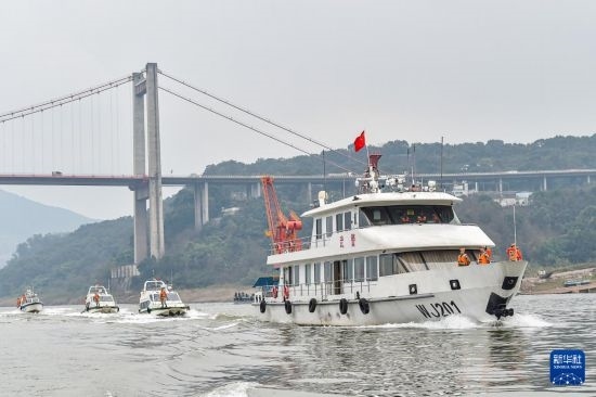 1月29日,武警重慶總隊船艇支隊官兵在長江重慶段水域巡邏。