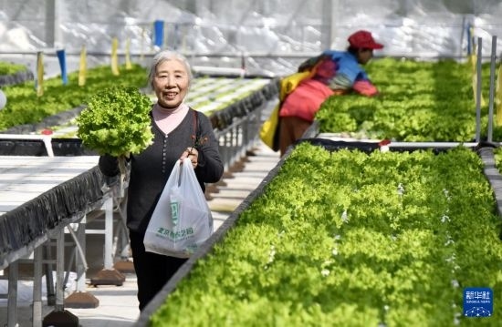 3月18日,市民在朝來農(nóng)藝園溫室內(nèi)采摘新鮮蔬菜。