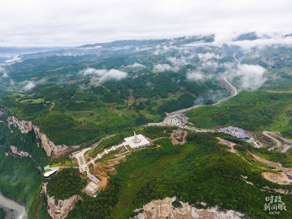 △俯瞰化屋村?!盎荨痹谝妥逭Z里是“巖壁”的意思,村民早年外出必須從懸崖峭壁邊走,地勢危險缺少防護。(總臺央視記者安楠拍攝)