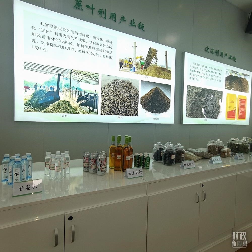 △甘蔗深加工產(chǎn)業(yè)鏈及產(chǎn)品展示。(總臺央視記者鐘銳拍攝)