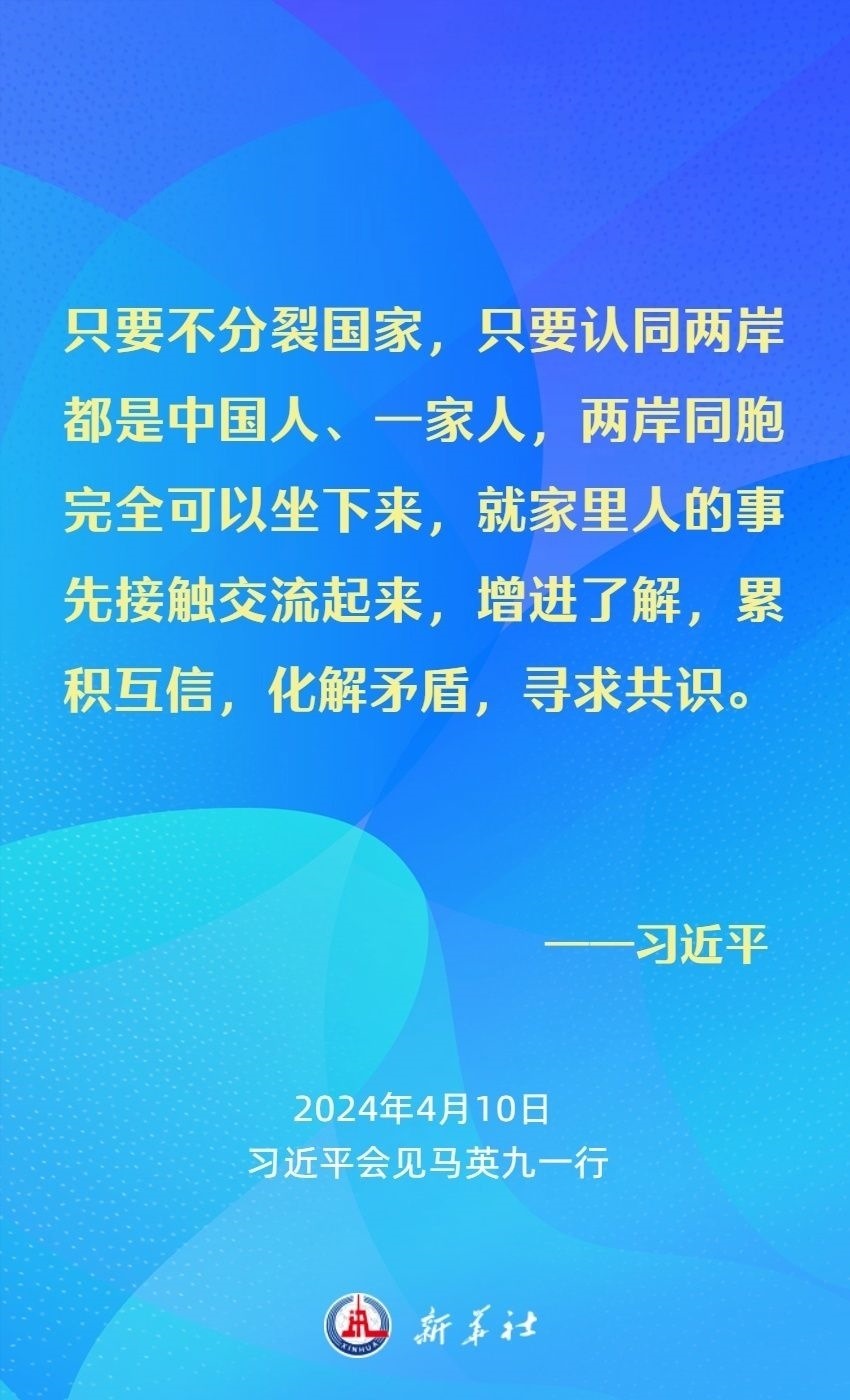 習(xí)近平強調(diào),兩岸同胞有共同的血脈、共同的文化、共同的歷史,更重要的是我們對民族有共同的責(zé)任、對未來有共同的期盼。我們要從中華民族整體利益和長遠發(fā)展來把握兩岸關(guān)系大局。