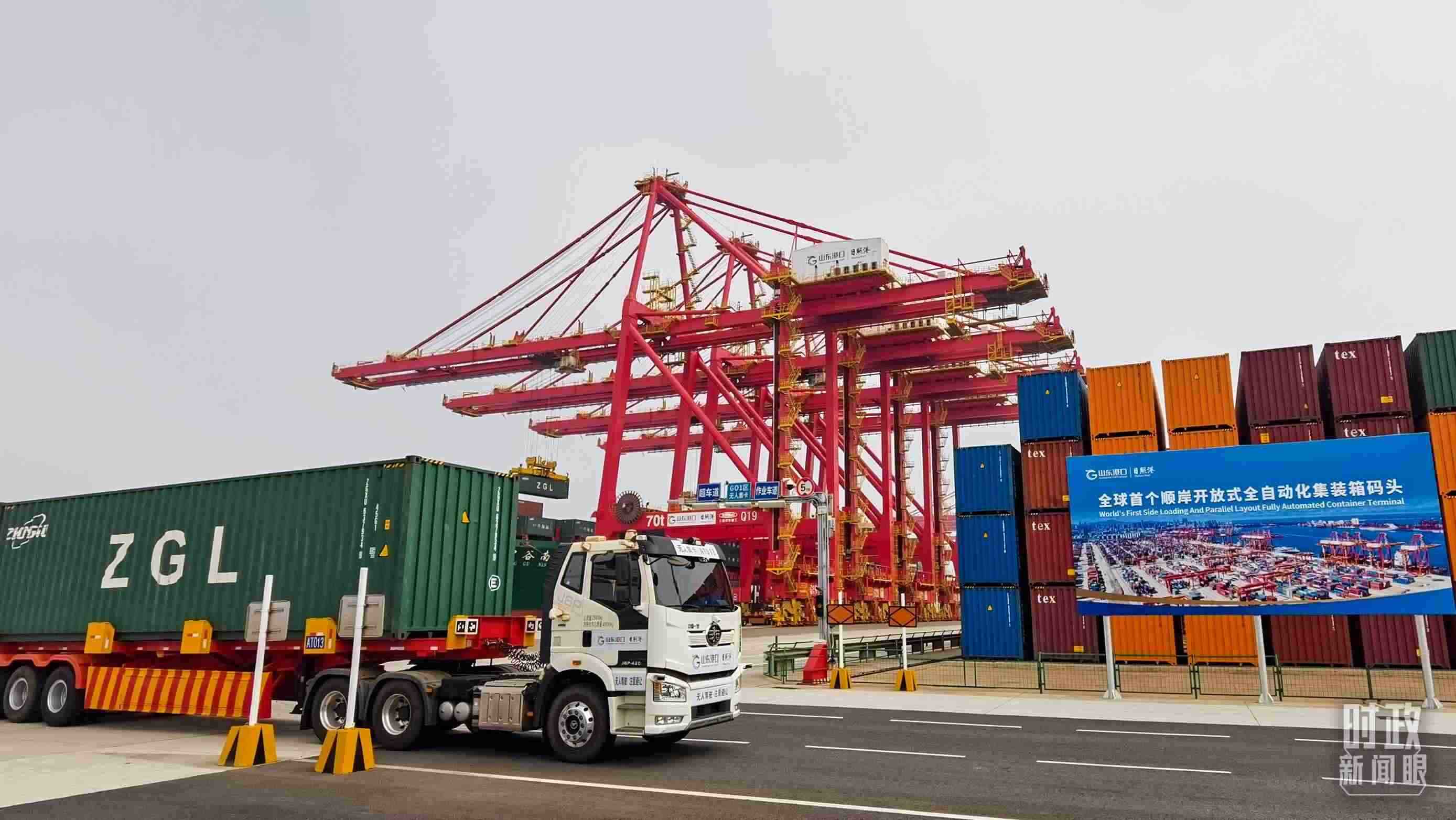 這里不僅是國(guó)家支持建設(shè)的大宗干散貨智慧綠色示范港口,還建成全球首個(gè)順岸開(kāi)放式全自動(dòng)化集裝箱碼頭,單機(jī)效率提升50%,每年可削減碳排放9000多噸。