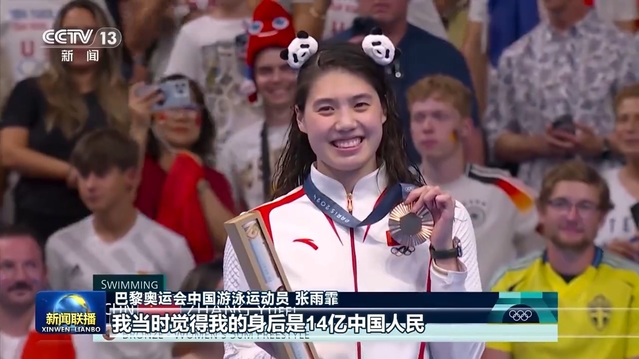 巴黎奧運(yùn)會(huì)中國(guó)游泳運(yùn)動(dòng)員 張雨霏:沒(méi)有想到他當(dāng)時(shí)走在我們跟前,每一名運(yùn)動(dòng)員的成績(jī)和名字他都記住了,然后就是親切地與我們交談,每個(gè)人交談的內(nèi)容都不一樣。我覺得生在中國(guó)真好,特別是在賽場(chǎng)上的時(shí)候,我沒(méi)有拿到冠軍,但是我看見一面面五星紅旗,他們依然在為我加油吶喊,安慰我,我當(dāng)時(shí)覺得我的身后是14億中國(guó)人民。