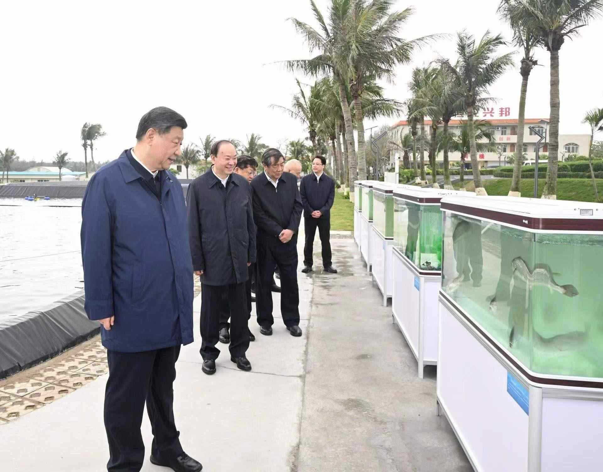 △2023年4月10日,習(xí)近平總書記在廣東省湛江市國家863計(jì)劃項(xiàng)目海水養(yǎng)殖種子工程南方基地考察調(diào)研。