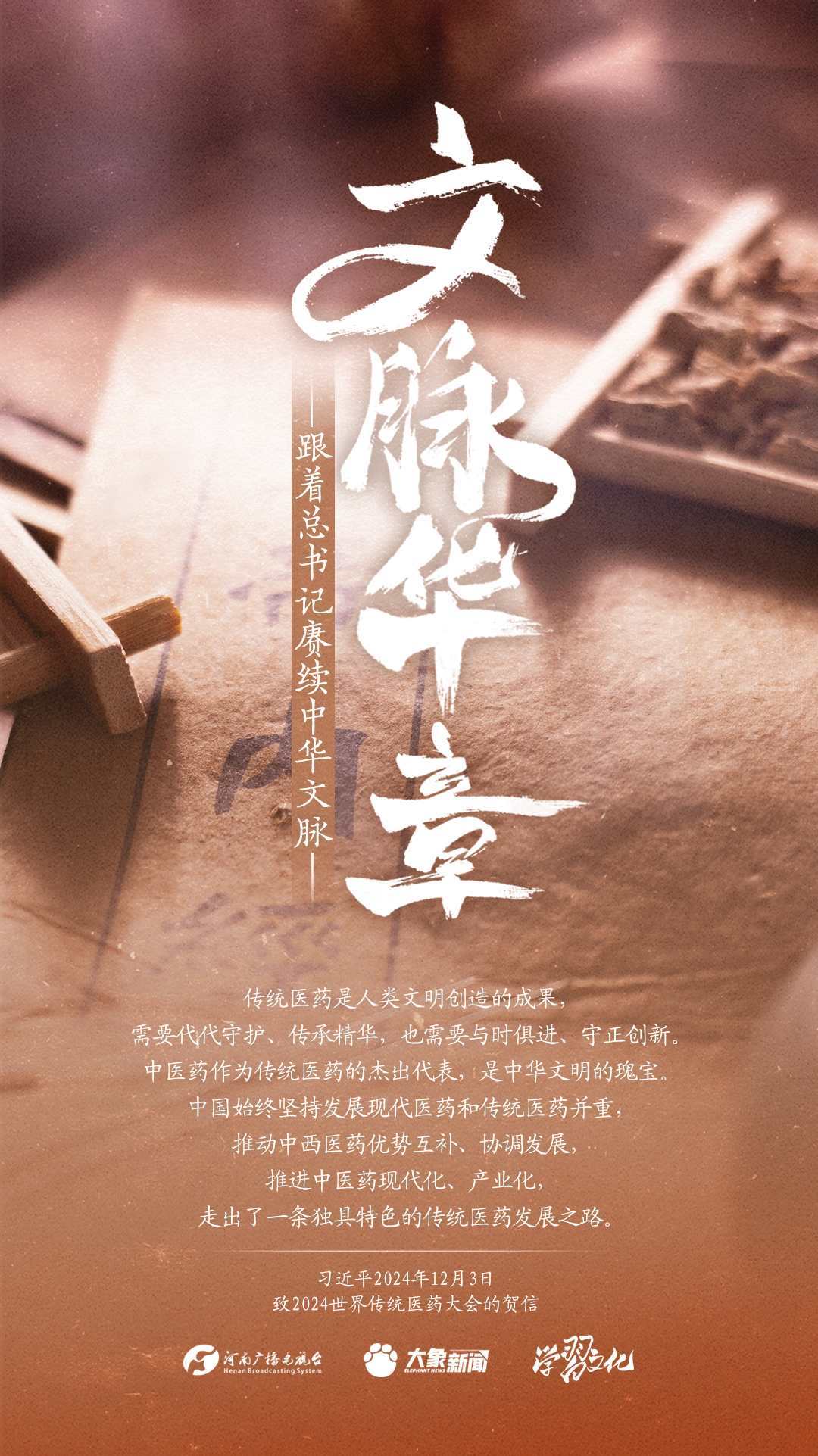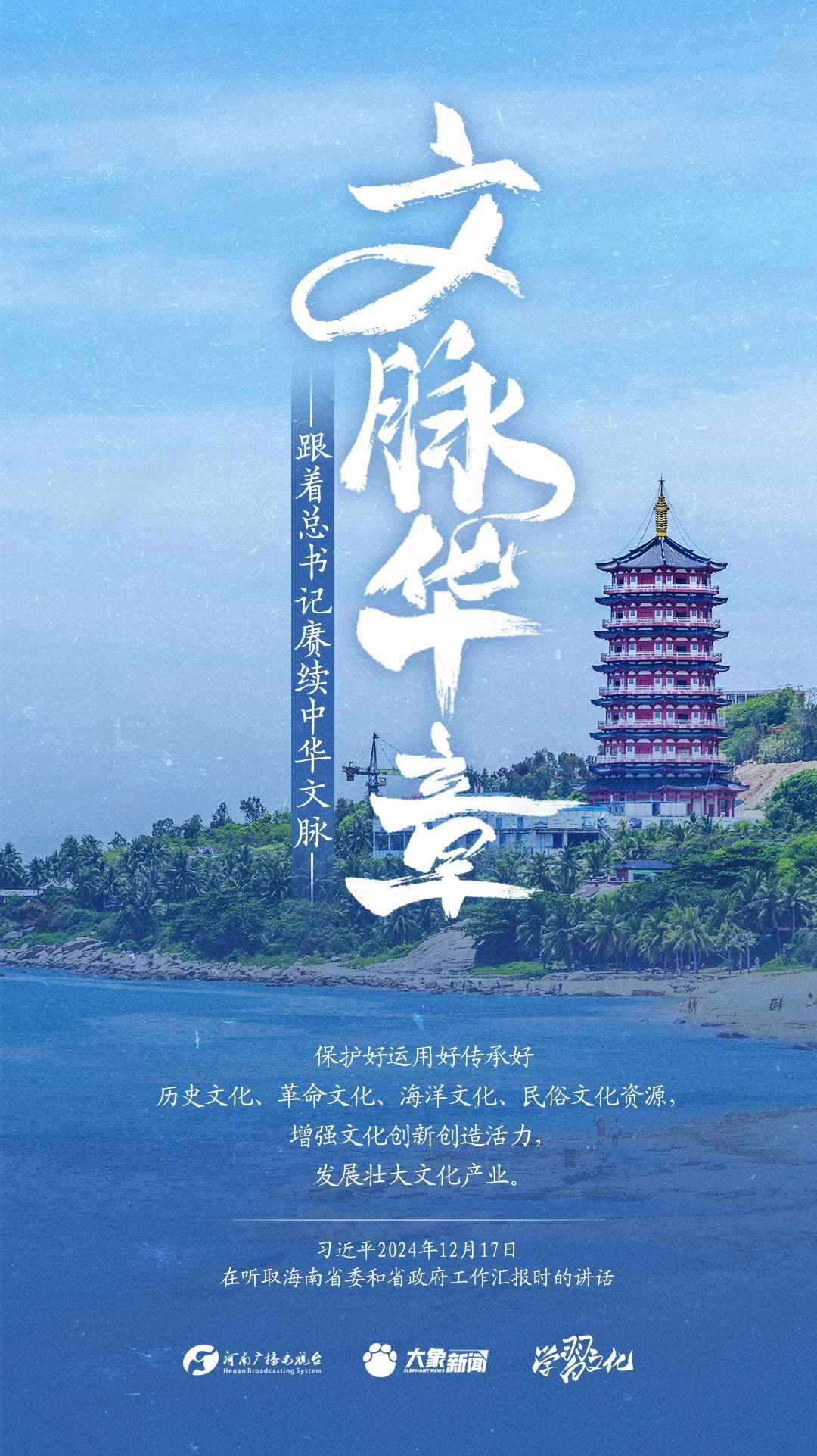 習(xí)近平總書記高度重視中華優(yōu)秀傳統(tǒng)文化的繼承和弘揚(yáng)。2024年,總書記一如既往,念茲在茲。在赴地方考察、主持召開重要會(huì)議等眾多場合,多次對(duì)傳承發(fā)展中華優(yōu)秀傳統(tǒng)文化作出重要講話重要指示。大象新聞邀您一起,跟著總書記賡續(xù)中華文脈,推動(dòng)中華優(yōu)秀傳統(tǒng)文化創(chuàng)造性轉(zhuǎn)化和創(chuàng)新性發(fā)展,在新的起點(diǎn)上繼續(xù)推動(dòng)文化繁榮、建設(shè)文化強(qiáng)國、建設(shè)中華民族現(xiàn)代文明。