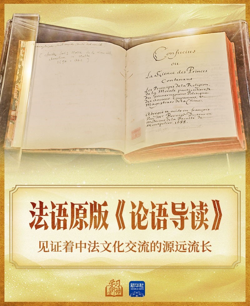 2019年3月,習近平主席訪法期間收到法國總統(tǒng)馬克龍贈送的珍貴法文古籍《論語導讀》。習近平主席說:“這個禮物很珍貴,我要把它帶回去收藏在中國國家圖書館?!?/p>