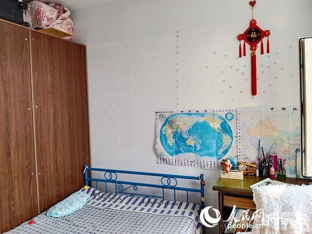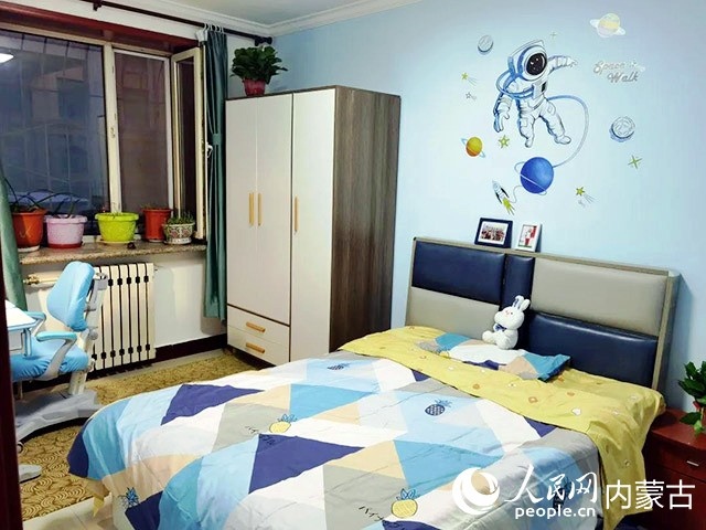 在對原有住房進行規(guī)劃、設計后,施工隊開始裝修,并配備必要的家具、臥具和學習生活用品。歷時半個多月,一間以藍色為主色調(diào)的小屋建成了。現(xiàn)在,屬于浩博的那一半臥室,泛黃的臥室墻壁被粉刷成淡藍色,換了新的小床和衣柜,新添置的書桌上擺滿了課外書,看起來整潔又溫馨。