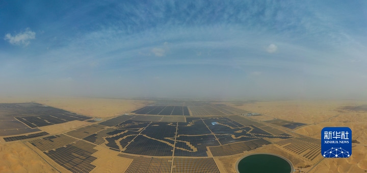 鄂爾多斯市庫布其沙漠深處,由近20萬塊深藍色光伏板構(gòu)成的巨型駿馬圖令人震撼,不少“拍客”慕名而來。這處駿馬光伏電站相當于180多個標準足球場大小,板上發(fā)電、板下種植,既利用豐富的太陽能資源,又推動沙漠生態(tài)治理。