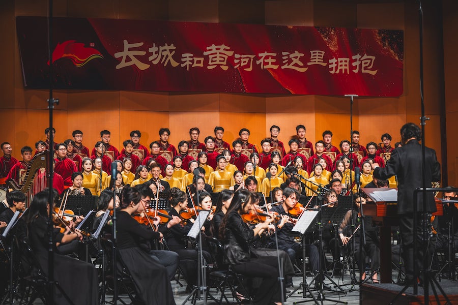 12月20日晚,“長城和黃河在這里擁抱”交響聲樂作品音樂會在內(nèi)蒙古藝術(shù)學(xué)院新華校區(qū)演藝廳華美上演。