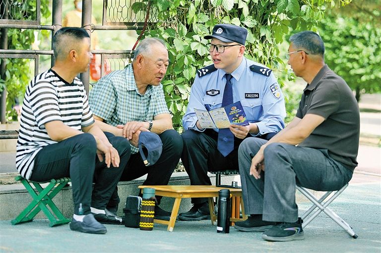 包頭市公安局東河分局南圪洞派出所輔警深入轄區(qū)開展反詐宣傳。馬嘉興 攝