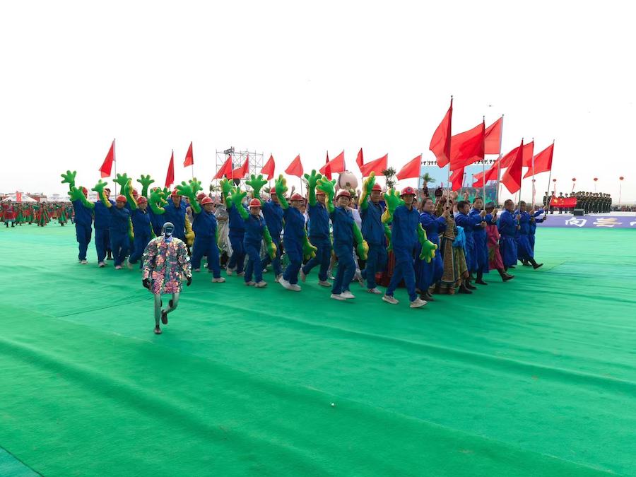 2025阿拉善那達(dá)慕開幕式上儀仗隊護(hù)送國旗走向場地