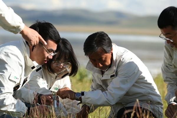 馬騰帶領(lǐng)團隊在內(nèi)蒙古錫林郭勒大草原采集自然發(fā)酵乳。左三為馬騰。受訪者供圖