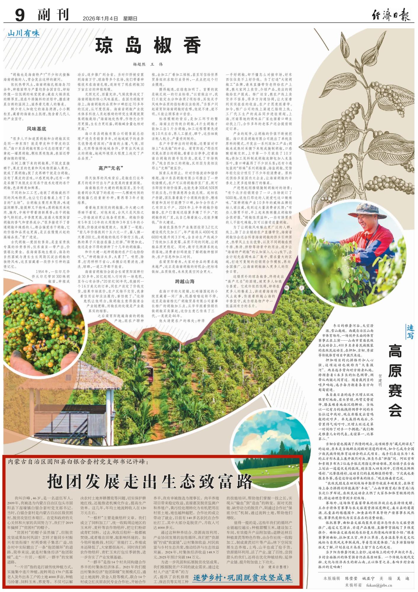 2026年1月4日,《經(jīng)濟(jì)日?qǐng)?bào)》第9版刊發(fā)題為《內(nèi)蒙古自治區(qū)固陽(yáng)縣白銀合套村黨支部書記許峰:抱團(tuán)發(fā)展走出生態(tài)致富路》的文章,介紹了內(nèi)蒙古自治區(qū)固陽(yáng)縣白銀合套村通過(guò)種養(yǎng)結(jié)合、資源高效利用、產(chǎn)業(yè)協(xié)同發(fā)展的良性循環(huán),把“資源鏈”擰成“致富鏈”,推動(dòng)經(jīng)濟(jì)與生態(tài)效益雙贏的做法。