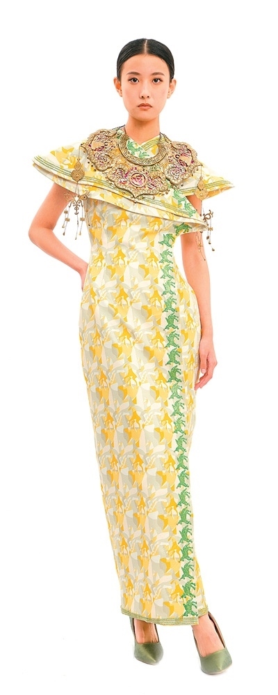 崔榮榮團隊為“中法時尚之約:絲路遺產(chǎn)創(chuàng)新設(shè)計時裝發(fā)布會”設(shè)計的“絲綢之路”禮服。