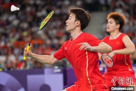 資料圖:當(dāng)?shù)貢r(shí)間8月4日,在巴黎奧運(yùn)會(huì)羽毛球男子雙打決賽中,中國(guó)組合梁偉鏗/王昶奪得銀牌。圖為梁偉鏗/王昶(前)在比賽中。 記者 趙文宇 攝
