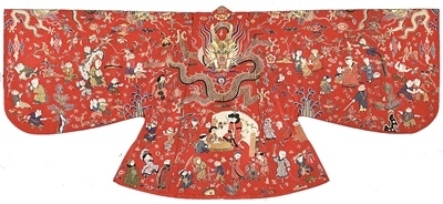 圖為明代定陵出土的孝靖皇后百子衣背面(復制品)。